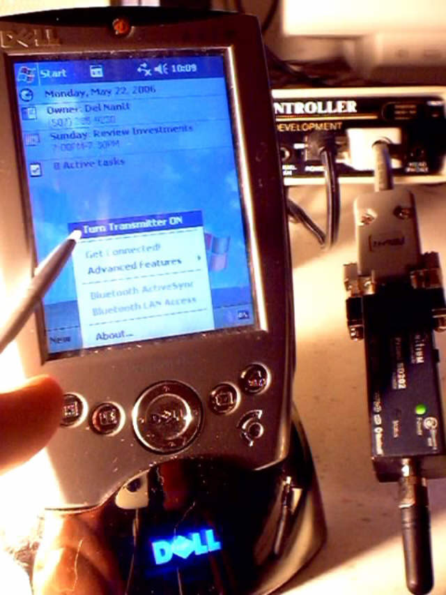 It is possible to operate the DLC/MSR System wirelessly by replacing the RS232 serial cable with bluetooth wireless adapters. Various bluetooth devices exist for RS232 cable replacement. Below, is an example of using a Dell Axim X5 PDA to operate an MSR System by wireless bluetooth connection.